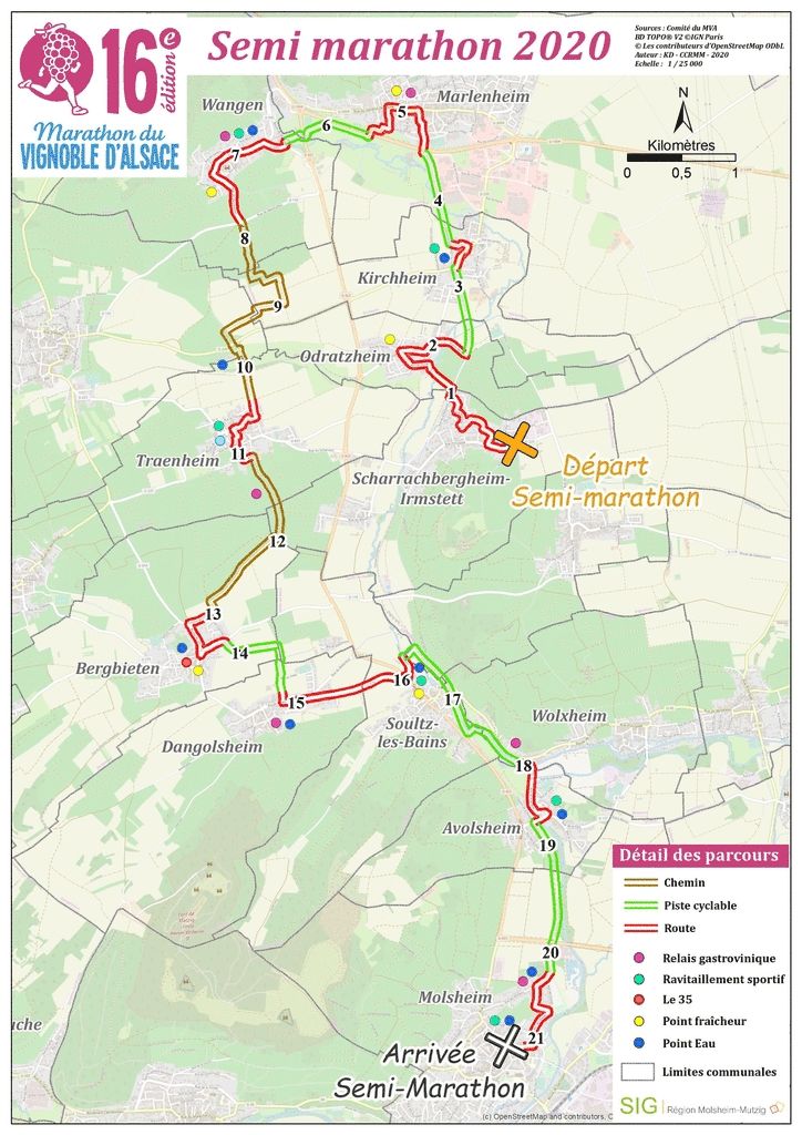 Valloné au coeur du vignoble d'Alsace, il traverse 11 villages typiques, 6 dégustations gastro-viniques du terroir alsacien en accord mets-vins, 6 ravitaillements sportifs et 9 points d'eau